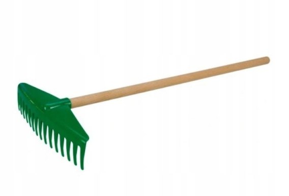 Duże grabki dziecięce z drewnianym uchwytem - zabawka do ogrodu.